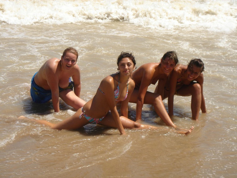 Туристки снимают лифчики на пляже и мажут голые тела песком
