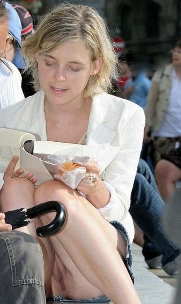 Девушки без трусиков в юбках светят голыми кисками в городе